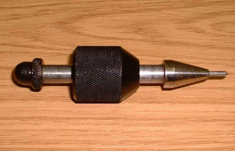 Gravity Center Punch Now this is a nice little item and another one from Tony Hattons toolbox. The gravity center punch uses the energy stored in the dropping knurled weight to gently center pop (mark) aluminium when the weight strikes the anvil. This was a good item to make that would illustrate the importance of tolerances, limits and fits and surface finish. All marked up on the manufacturing drg to be deciphered by the young apprentice. |