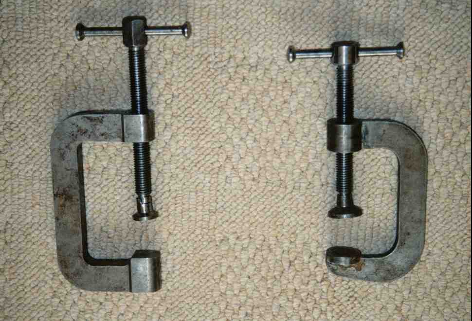The G-Clamp Here's a photo supplied by Paul Spencer of two G-Clamps! 88's Apprentices must have had a lot of time and little competition for resources as they seem to have got round to making just about everything, even two G-Clamps. Universal opinion of the clamps is that the bent if used to apply even a moderate clamping force.