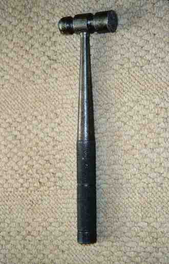 The Hammer More stuff of '88 vintage, this time the hammer. This is one of the more odd items to make and would transfer a lot of shock to the hand of its owner. Very nicely finished though with its knurled handle. A genuine handmade in Warrington hammer, another Paul Spencer original. |