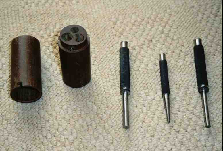 Punches and Tufnol Case/Holder Always remember being told, 'if we've got time you can make the holder', never did have the time so never made the holder. Look at the difference it makes to the punches, unlike mine they're not rusty or bent! The pins in the side of the holder are a nice touch to keep the lid on as well. As you can tell from the background these are Paul Spencers as well. |