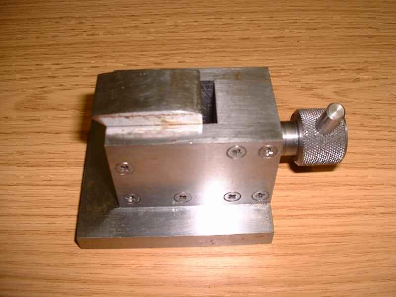 The Jack We've found two? Here they are, these suckers took milling to a precision art form though I cannot remember the name of the machine in the corner that we used to put the central slot in with. Lifts about half an inch tops and would possibly be of some use in a tool room or on a milling machine. Makes an excellent door stop and looks fantastic when good highly polished. The rusty unloved one is from the Pilkington toolbox, whereas the prize example is from the Hatton toolbox. Tony's apprentice pieces are in fantastic condition having laid undisturbed in oiled plastic bags since they were made twenty years ago. Note the design differences:- there is one year between their manufacture dates, yet one uses countersunk screws and the other socket head cap screws. |